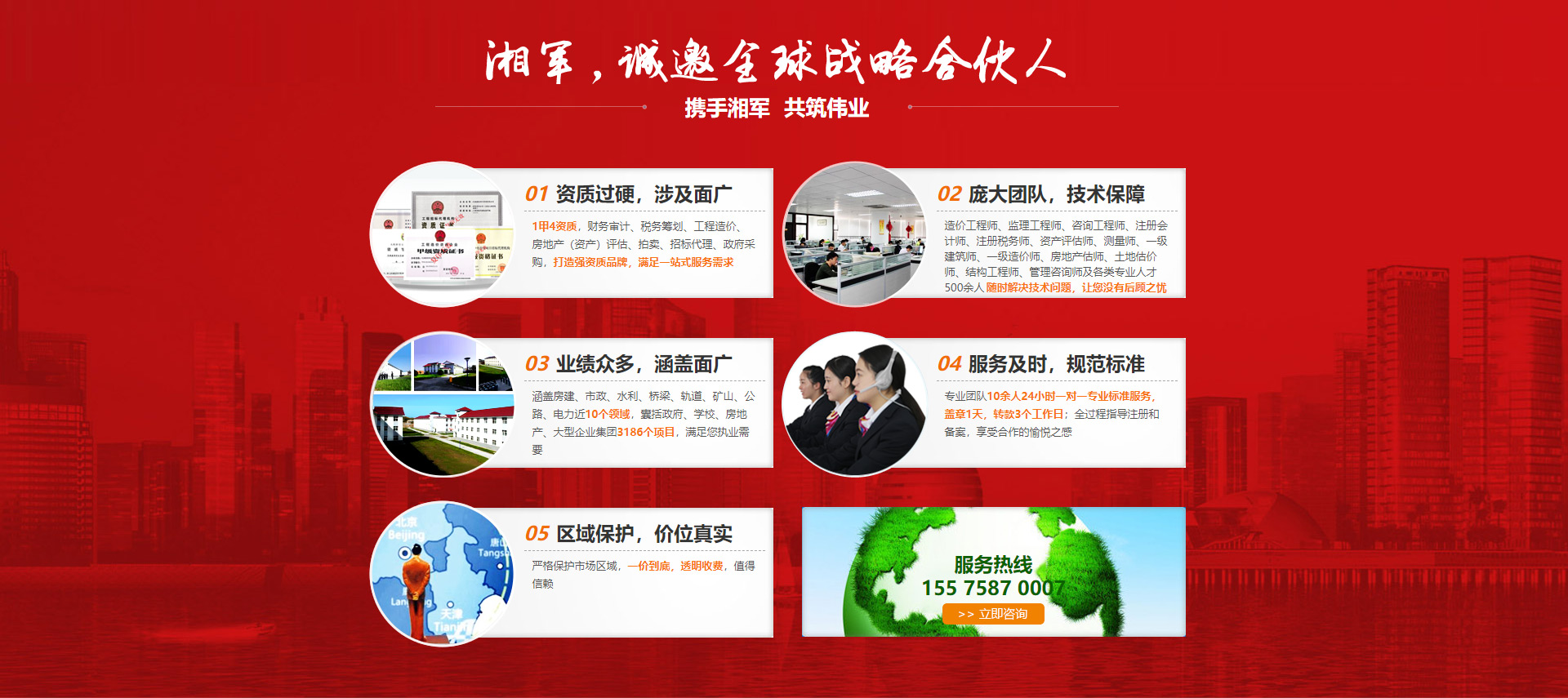 湖南湘軍咨詢集團有限公司創立于2008年,是湖南省目前最大的審計、評估、工程、經濟類綜合服務機構之一,形成了配套完善的工程項目服務、金融服務和財稅服務三大產品體系,具備項目決策、建設、運營、融資、管理咨詢、資本運作等一條龍服務功能。工程造價咨詢與工程監理等項目管理能力得到了各級政府的充分肯定,報表審計與房地產評估等金融服務產品在省內各金融機構通用,受到廣泛認同與支持。本集團為個人、企業、科技產業園、政府機構提供KPO(知識流程外包):驗資、審計、評估、工程造價、法律、融投資服務;BPO(業務流...